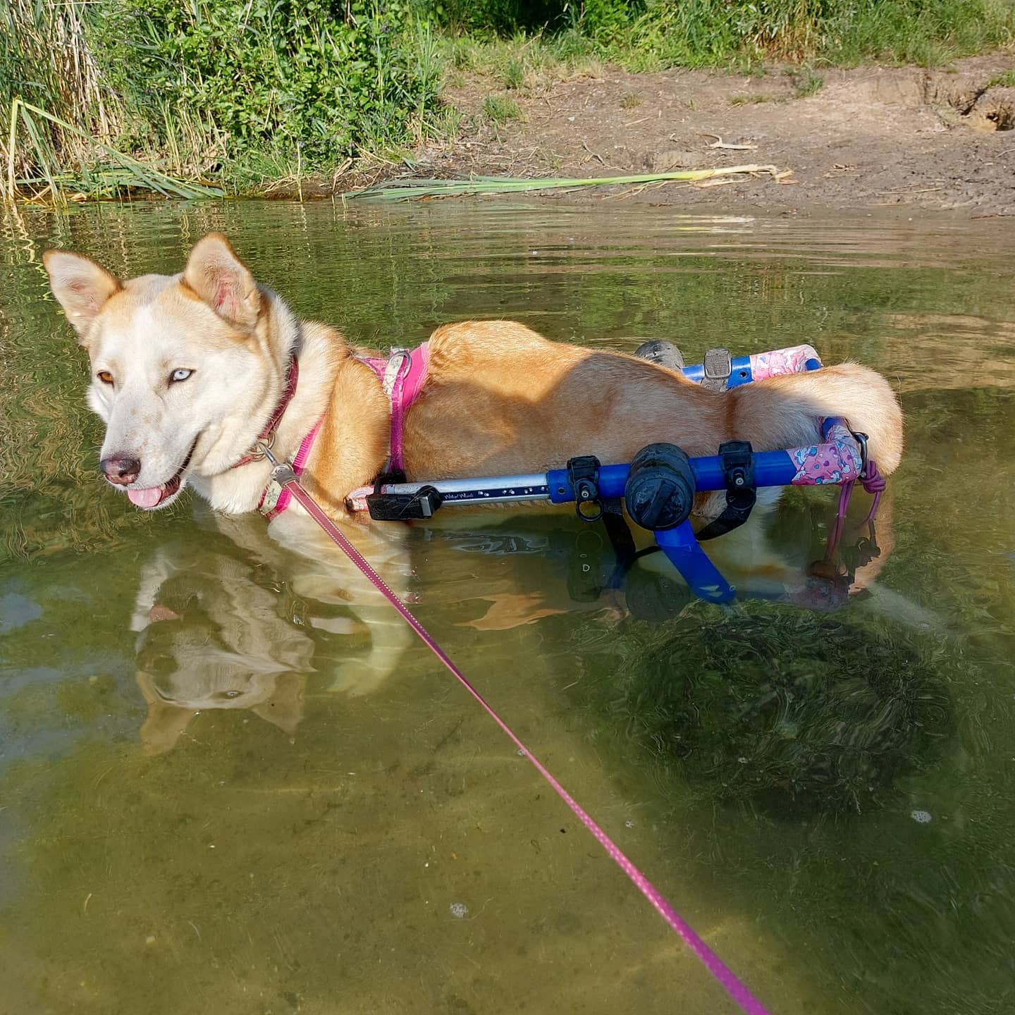 Zu mir gehören drei Huskies Hayley, Kätzchen und Lacey. Lacey ist ein Handicap Hund, ihre Hinterläufe sind gelähmt und sie benötigt ein Rolli. Außerdem gehört seit 2021 unsere Hollandse Herdermix Hündin Polly dazu.